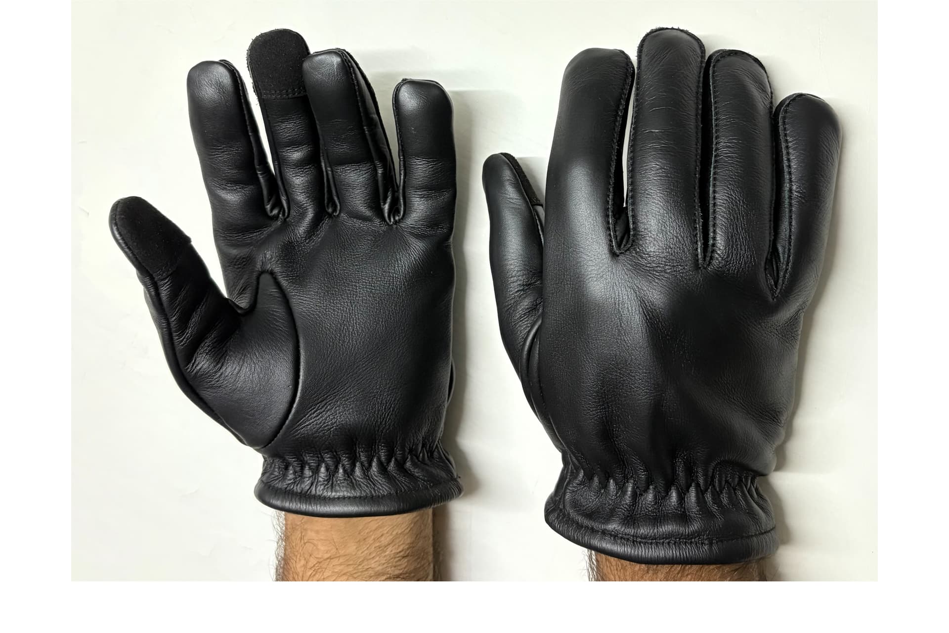 A high-performance tactical glove crafted from black cowhide semi-aniline water-repellent leather with a grippy finish. The glove incorporates a reinforced palm patch for added grip and durability, while the palm lining in UHMWPE fabric provides excellent cut and tear resistance. An elasticated wrist with Velcro fastening ensures a secure fit, while rubber padding on the back of the hand offers impact protection. Touch-sensitive patches on the finger and thumb allow convenient use with touchscreen devices.