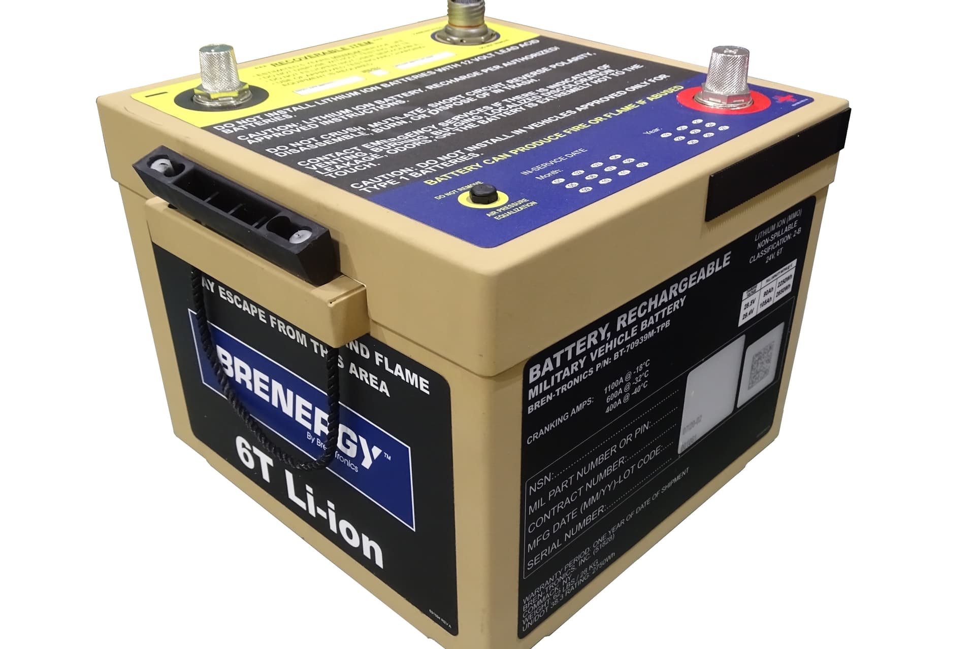 The BT-70939M-TPB is 24V metal-case lithium-ion batteries in a 6T form factor, that meets the Type 2B requirements of MIL-PRF-32565C.