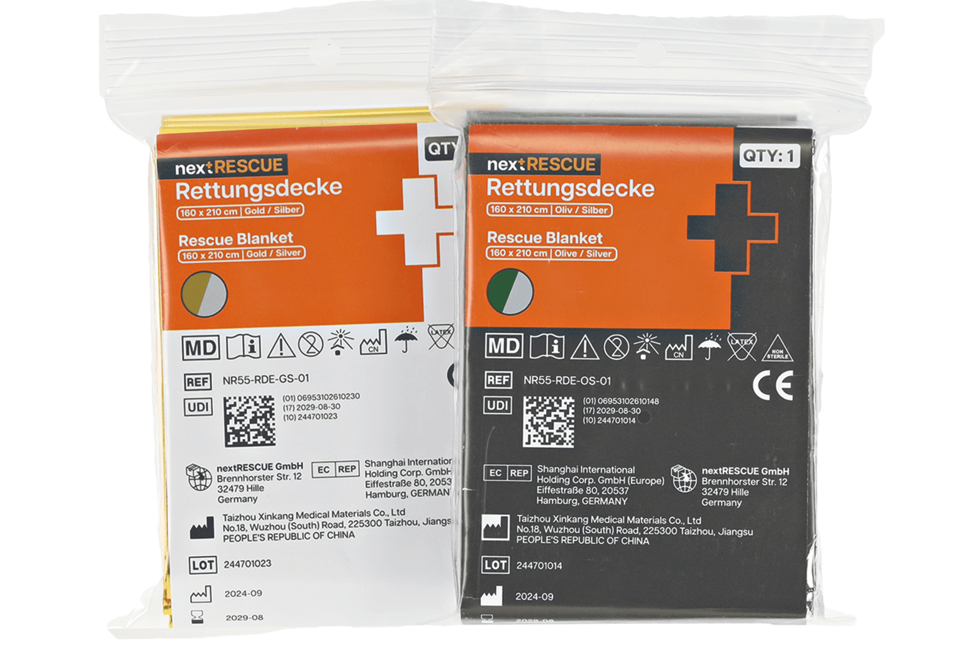 Each product is categorized with a base color to denote its operational area—gray for tactical environments and white for civilian or rescue services. Additional color accents provide precise identification of applications, such as hemorrhage control, airway management, or thermal regulation, ensuring that the right tool is found immediately.