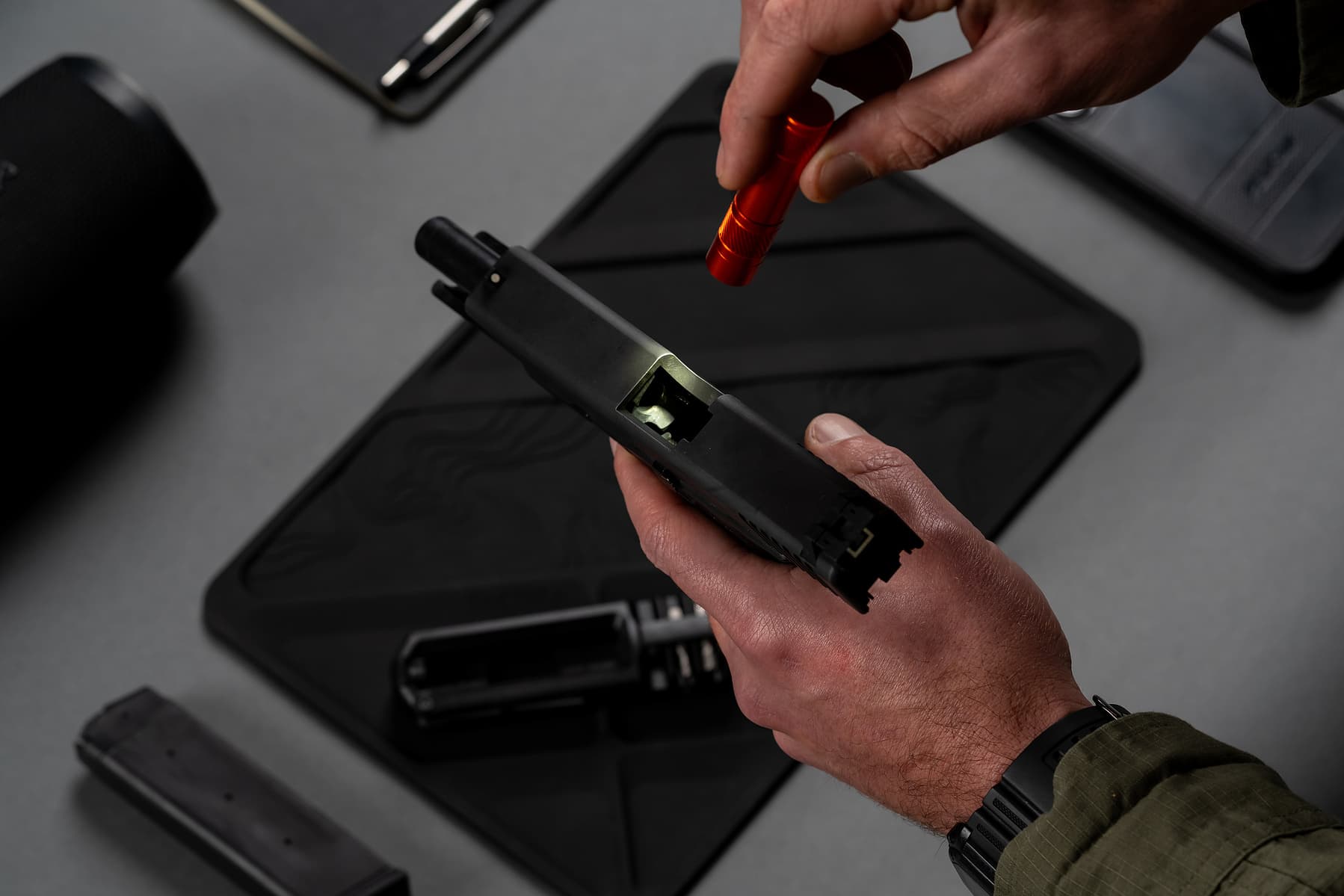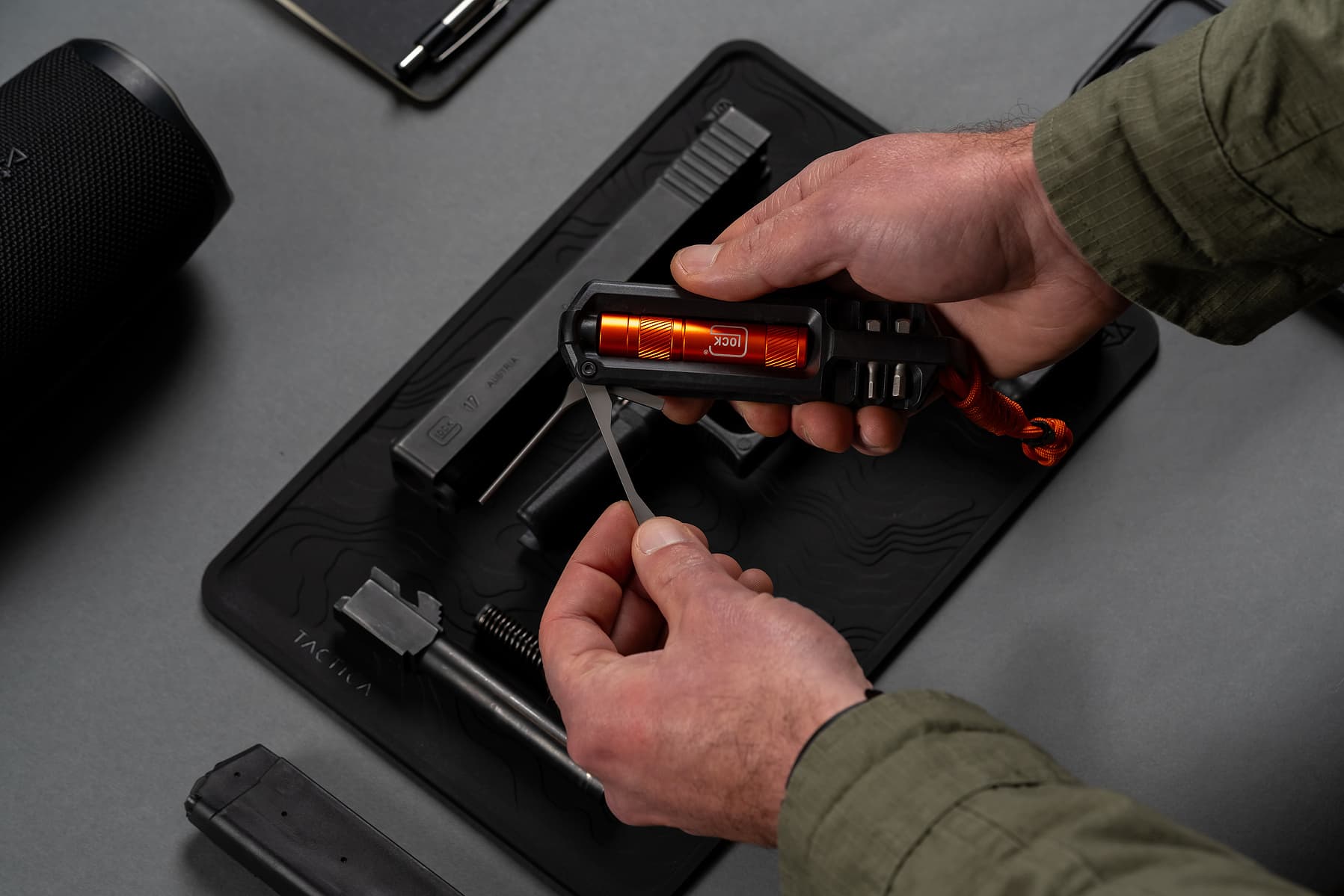 Our approach brought the users needs front and centre. By developing a multitool for the Glock platform that has all the necessary tools needed AND being able to be carried in a singl magazine pouch, the user has access to fix problems as they happen.
