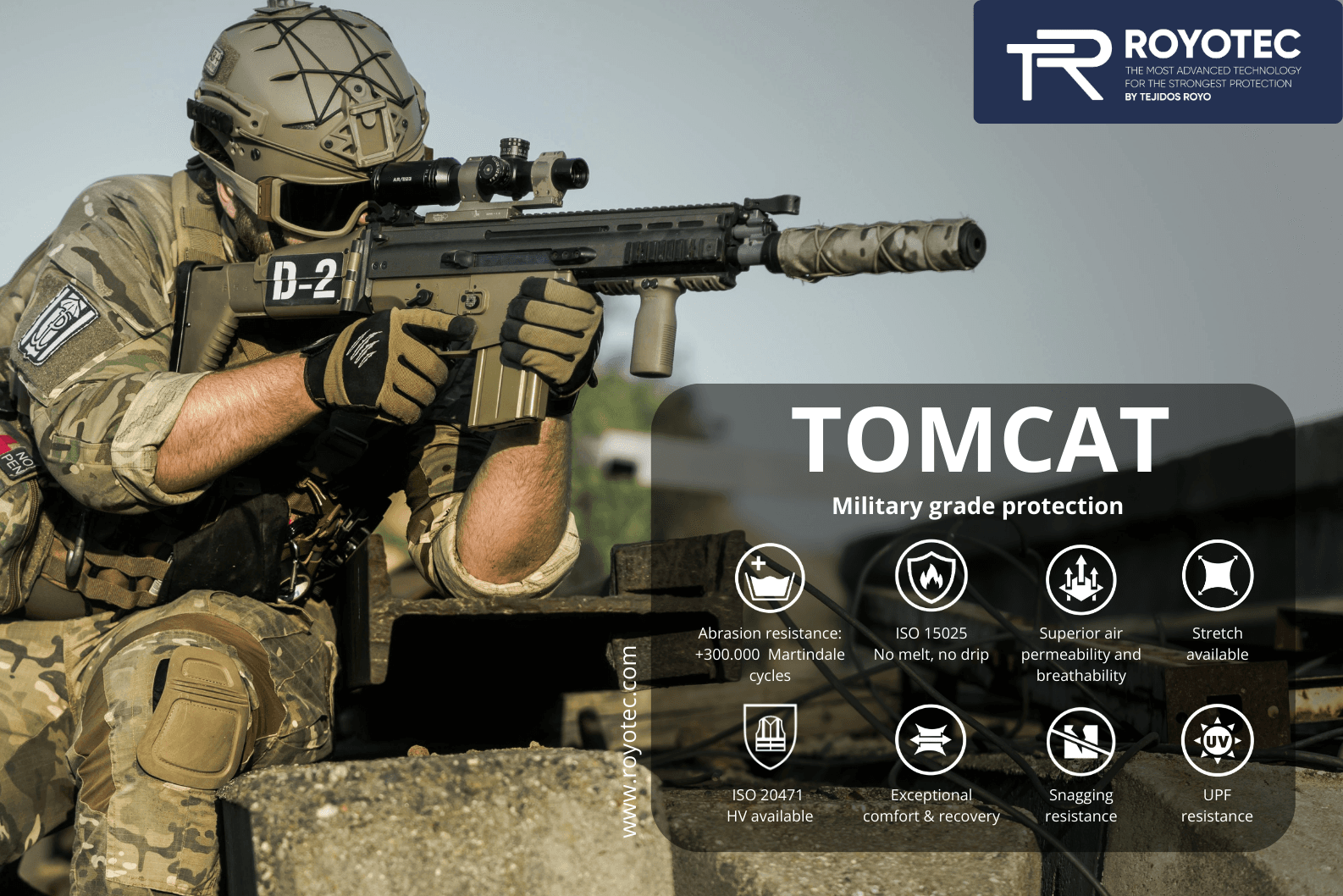 TOMCAT is the new generation of technical fabrics for tactical uniforms, combat and civil protection, engineered to deliver superior performancein missions requiring mobility, safety, resistance and reliability.
